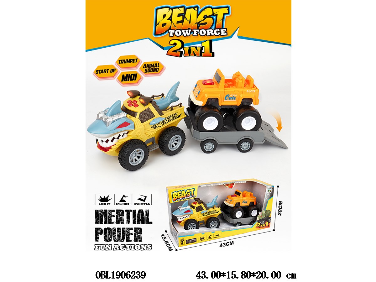 Home > F/P Car > Inertial shark car with lighting and music trailer, 1 light and music scooter, 3 * AG13 each, with electricity included