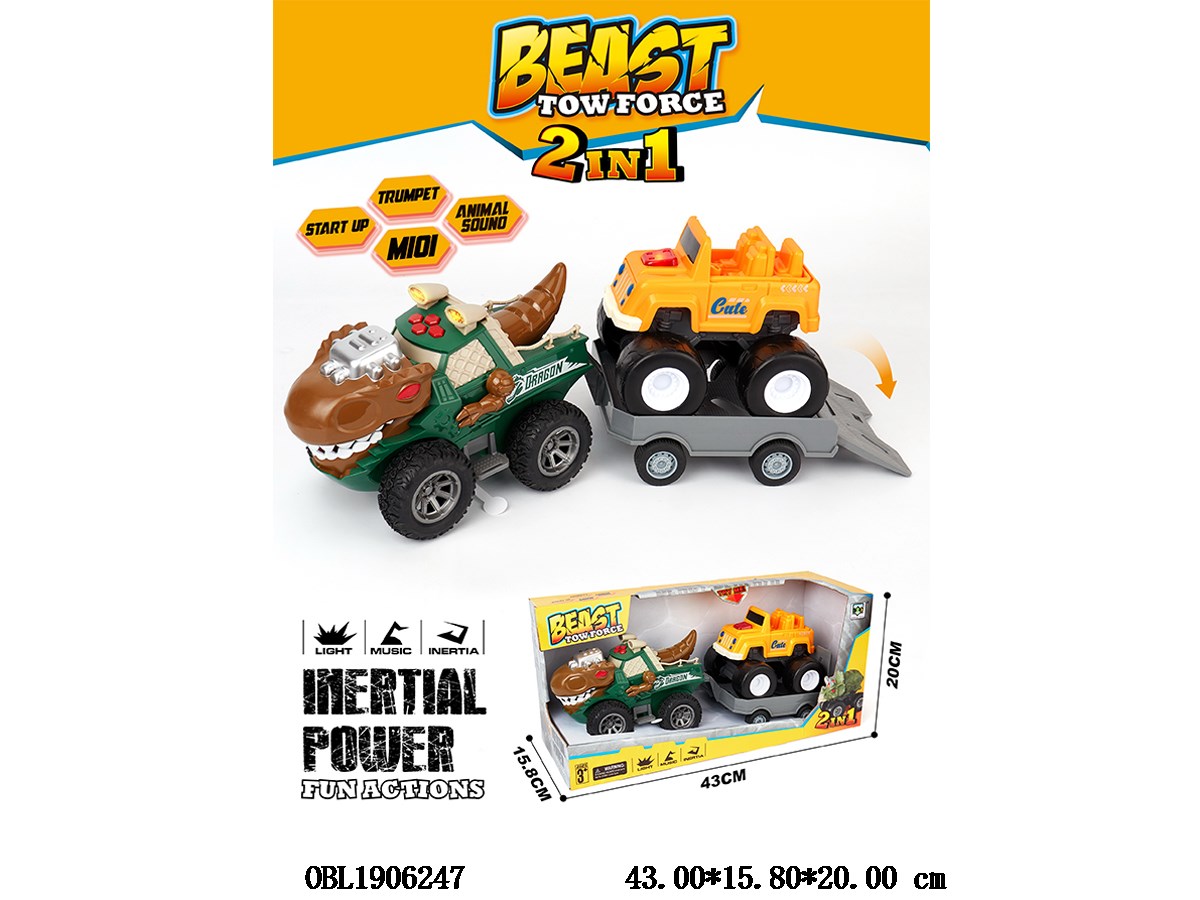 Home > F/P Car > Inertial Tyrannosaurus rex car with lighting and music trailer, 1 light and music scooter, 3 * AG13 each, with power included