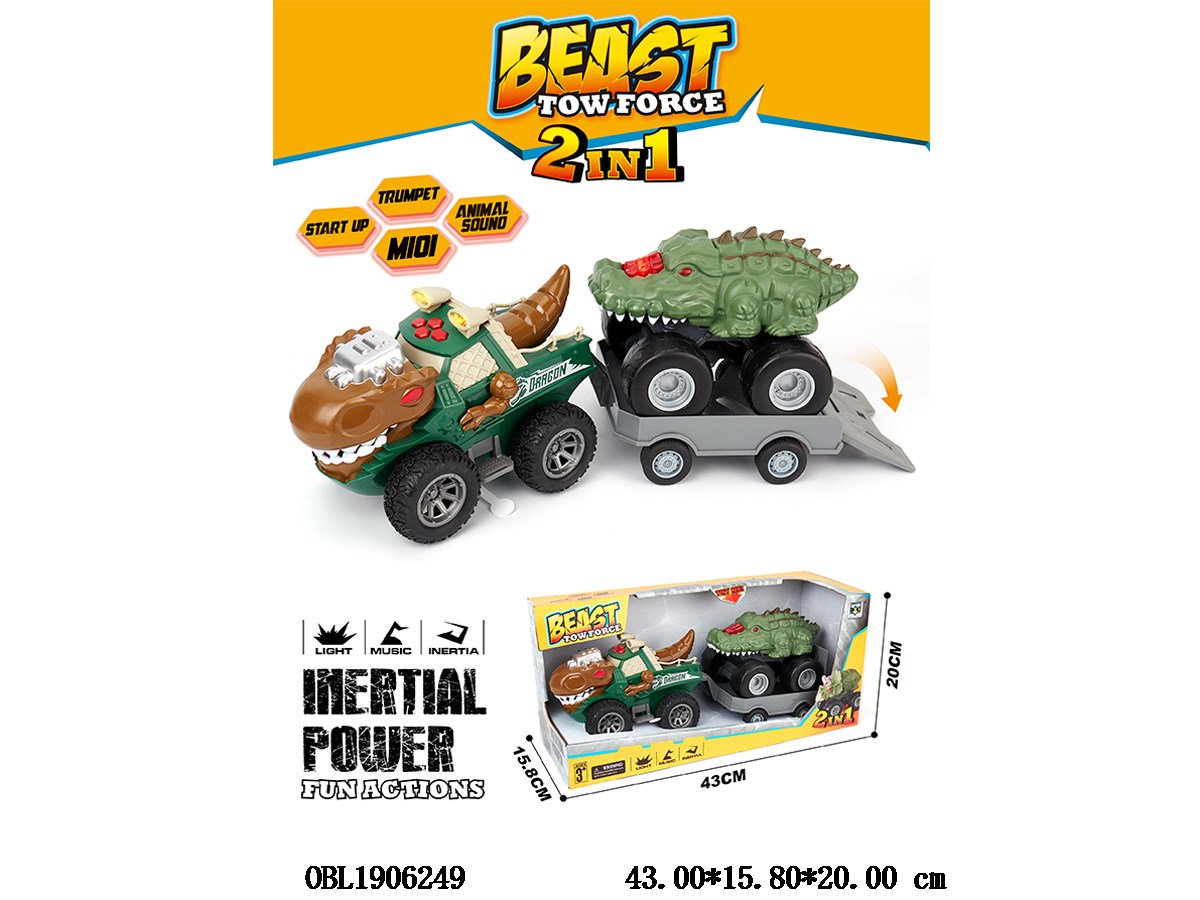 Home > F/P Car > Inertial Tyrannosaurus rex car with lighting and music trailer, 1 light and music scooter, 3 * AG13 each, with power included