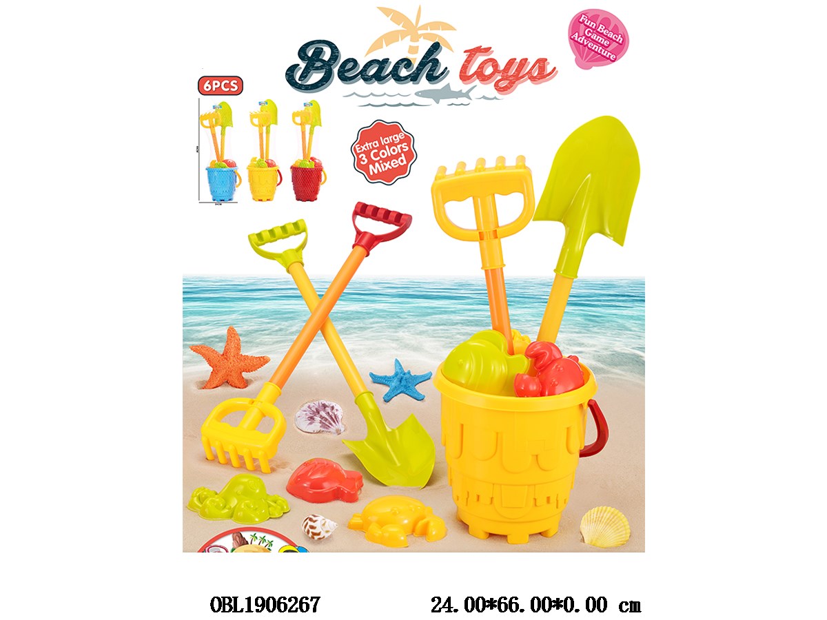 Beach toy set with hanging card, mixed in 3 colors