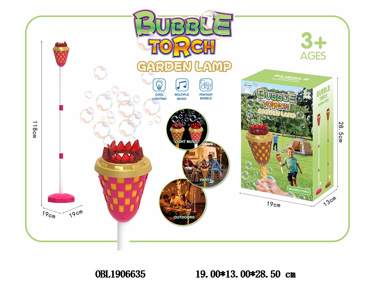 Red flame lamp vertical torch bubble machine with music and 100ml bubble water 3 * AA, no electricity included