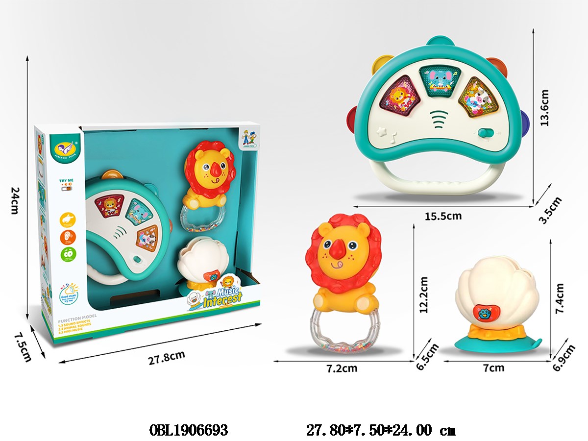 Home > Baby Rattles > 3 sets of shaking bells, hand bells, drums with lights, music, 2 * AA, including electricity