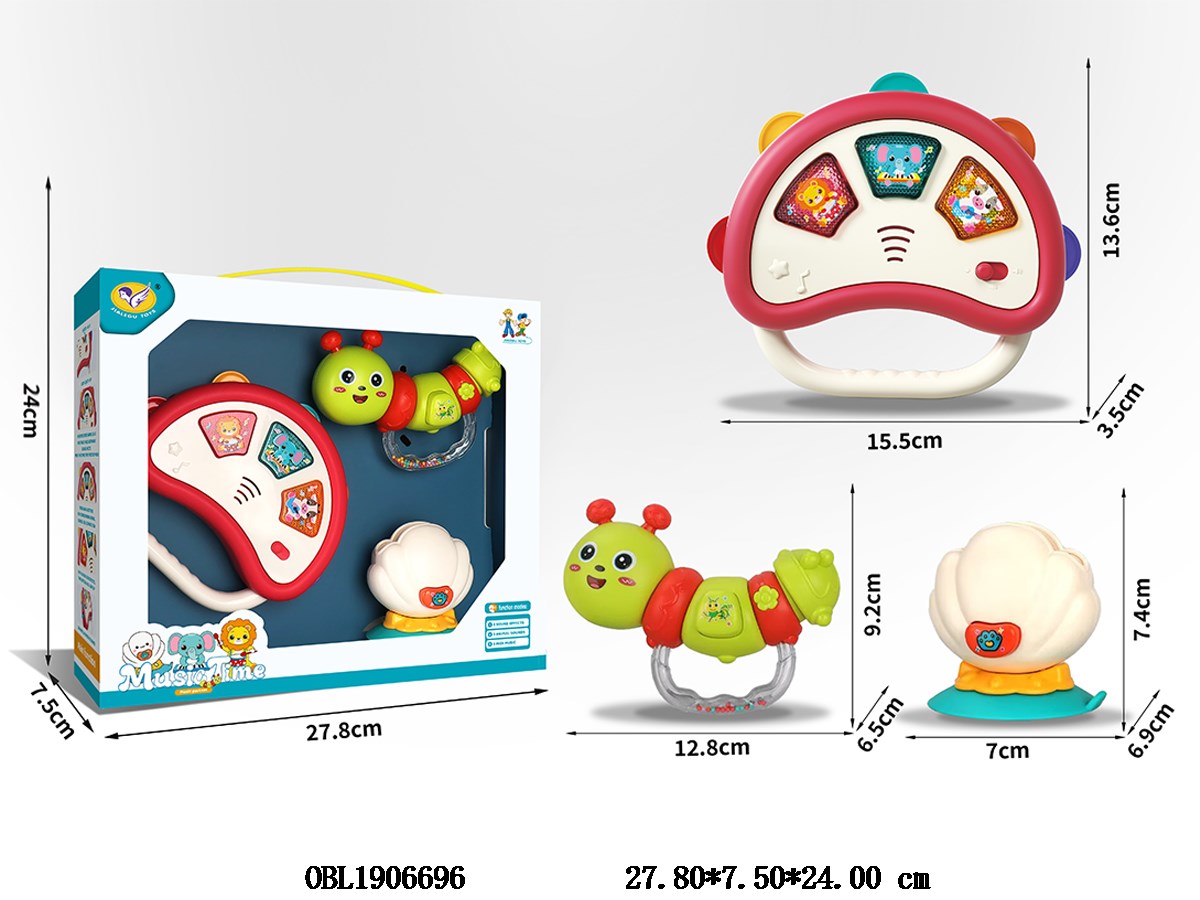 Home > Baby Rattles > 3 sets of shaking bells, hand bells, drums with lights, music, 2 * AA, no electricity included