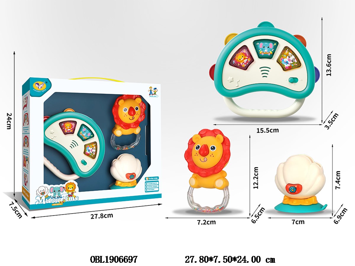 Home > Baby Rattles > 3 sets of shaking bells, hand bells, drums with lights, music, 2 * AA, no electricity included