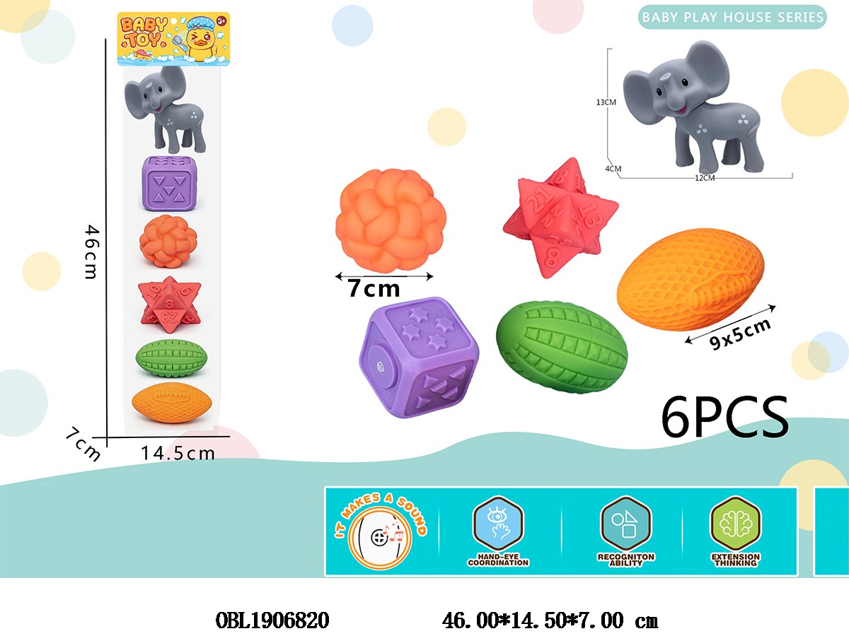 6-pack bathroom water splashing rubber massage ball with BB whistle