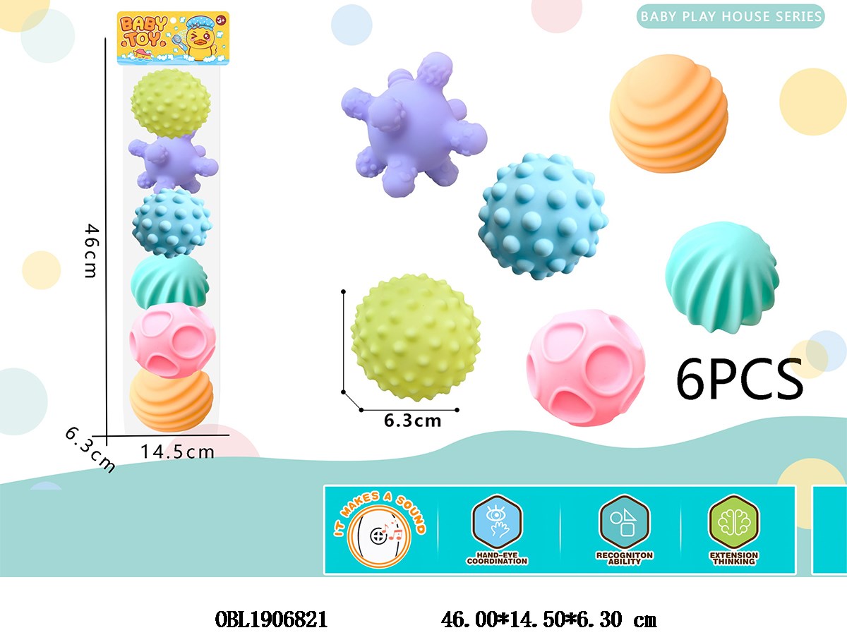 6-pack bathroom water splashing rubber massage ball with BB whistle