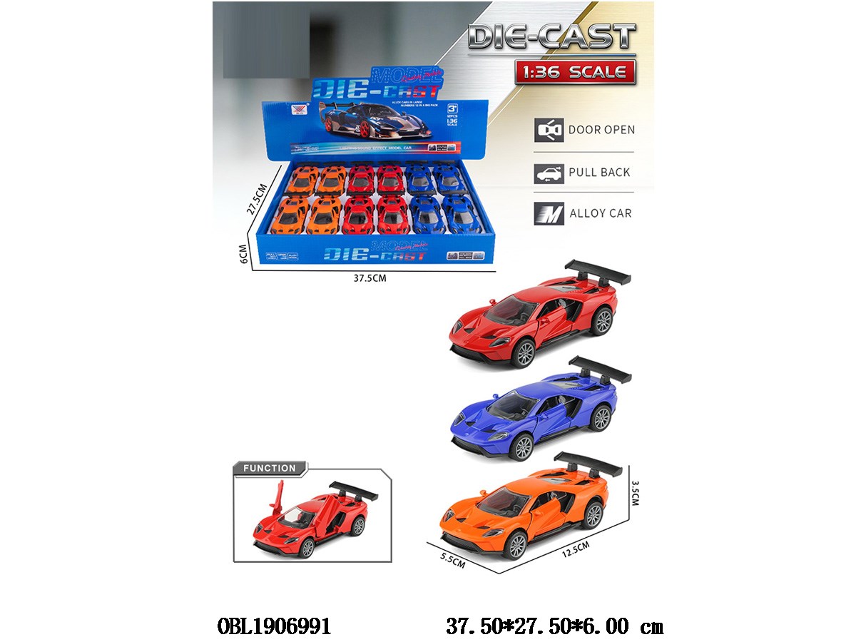 1: 36 alloy regenerative car can open doors, 3 colors mixed, 12 pieces packed in one display box