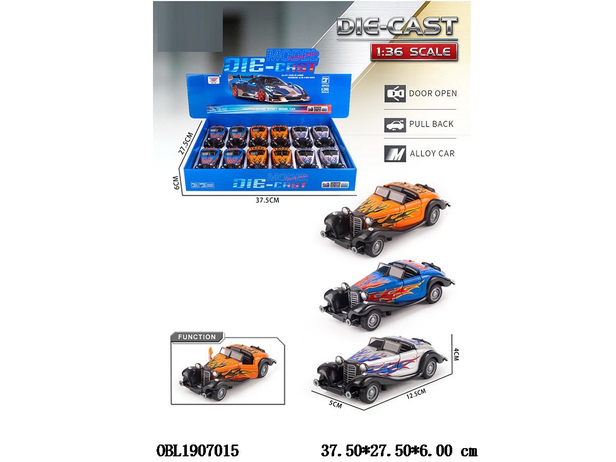 1: 36 alloy regenerative car can open doors, 3 colors mixed, 12 pieces packed in one display box