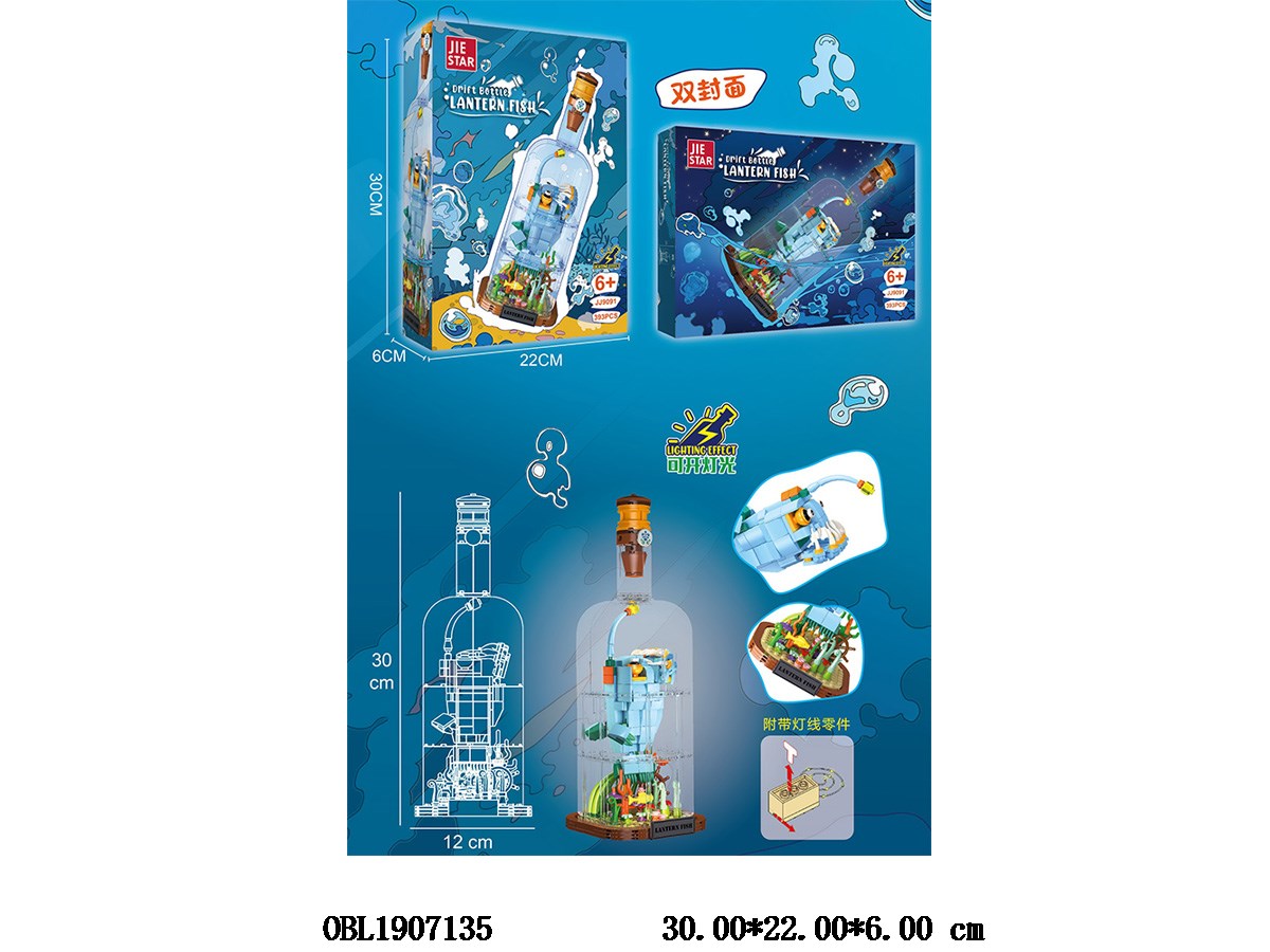 Home > Common Building Blocks > Puzzle building blocks, drifting bottles, ornaments, lantern fish with lights, 3 * AG13, electric package, 393PCS