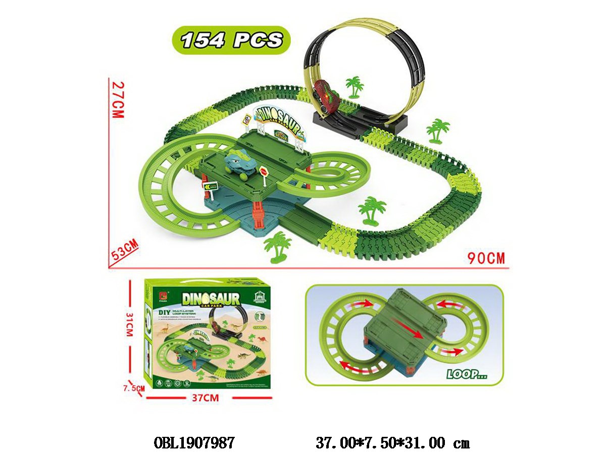 Home > DIY Parking Lot > Self installed dinosaur track parking lot set with 1 electric dinosaur car and 1 sliding dinosaur car, 2 * AAA, not including electricity