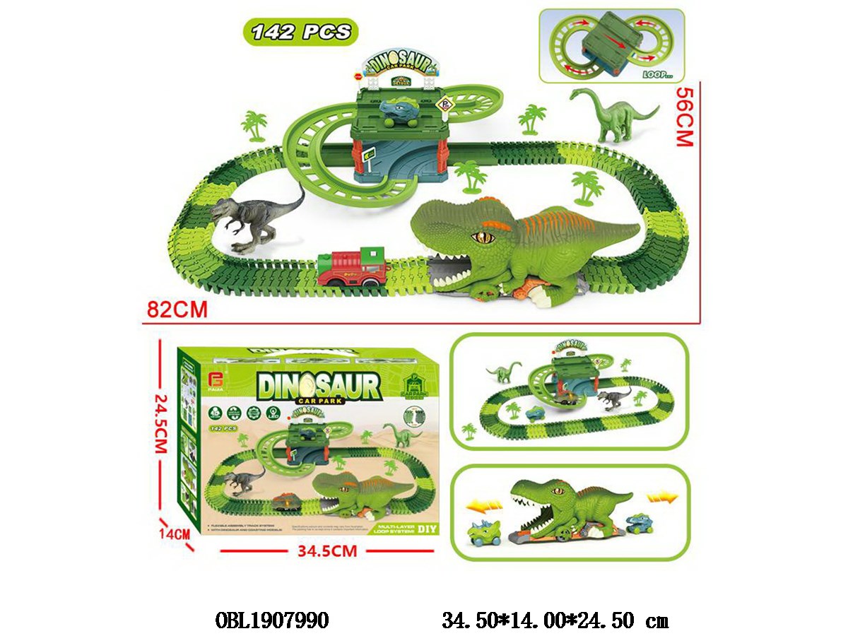 Home > DIY Parking Lot > Self installed dinosaur track parking lot set with 1 electric car and 1 sliding dinosaur car 2 * AAA, not including electricity