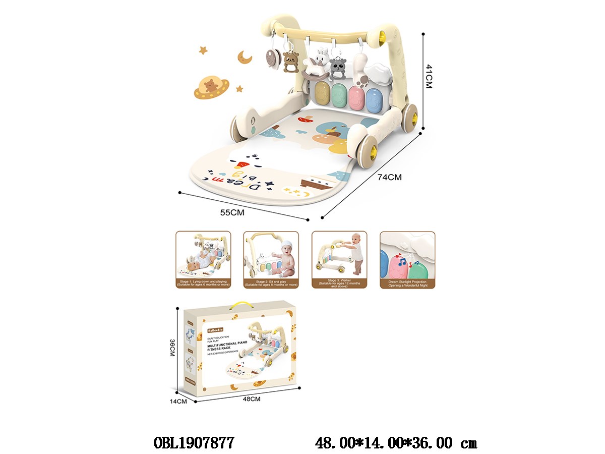 2-in-1 baby pedal piano/walker set 3 * AA, no electricity included