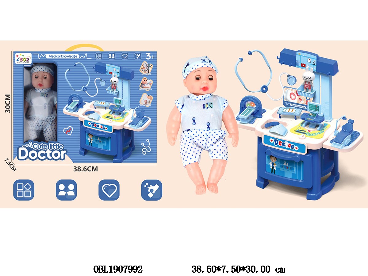Medical equipment set with 3 * AG3 lights, electric package, 8.5-inch empty doll clothes, 1 style, 1 color