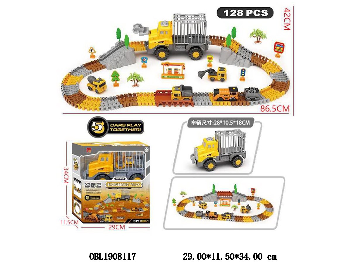 Electric engineering rail car set with 1 electric train, 1 sliding large engineering car, 3 sliding small engineering cars, 2 * AAA, not including electricity