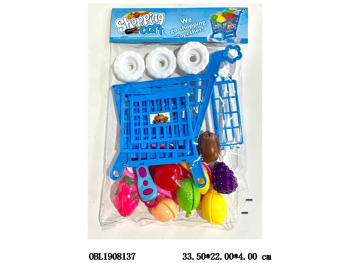 Playing house, fruits and vegetables, cutting and enjoying set with shopping cart