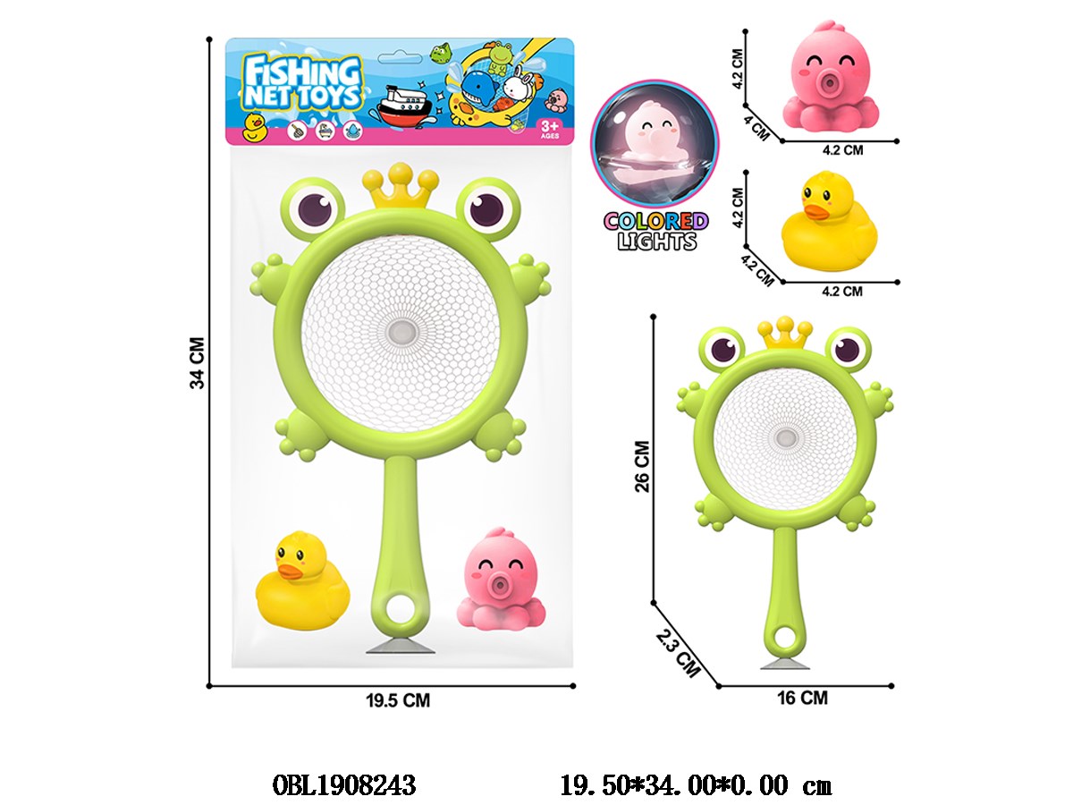 2 sets of vinyl animals with lights 3 * LR41 package with electricity and small frog fishing net bag