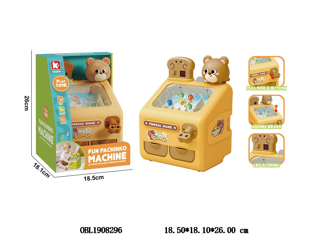 Brown Bear Pinball Machine Set with Lighting, Music, Scoring, 3 * AA, Power Not included