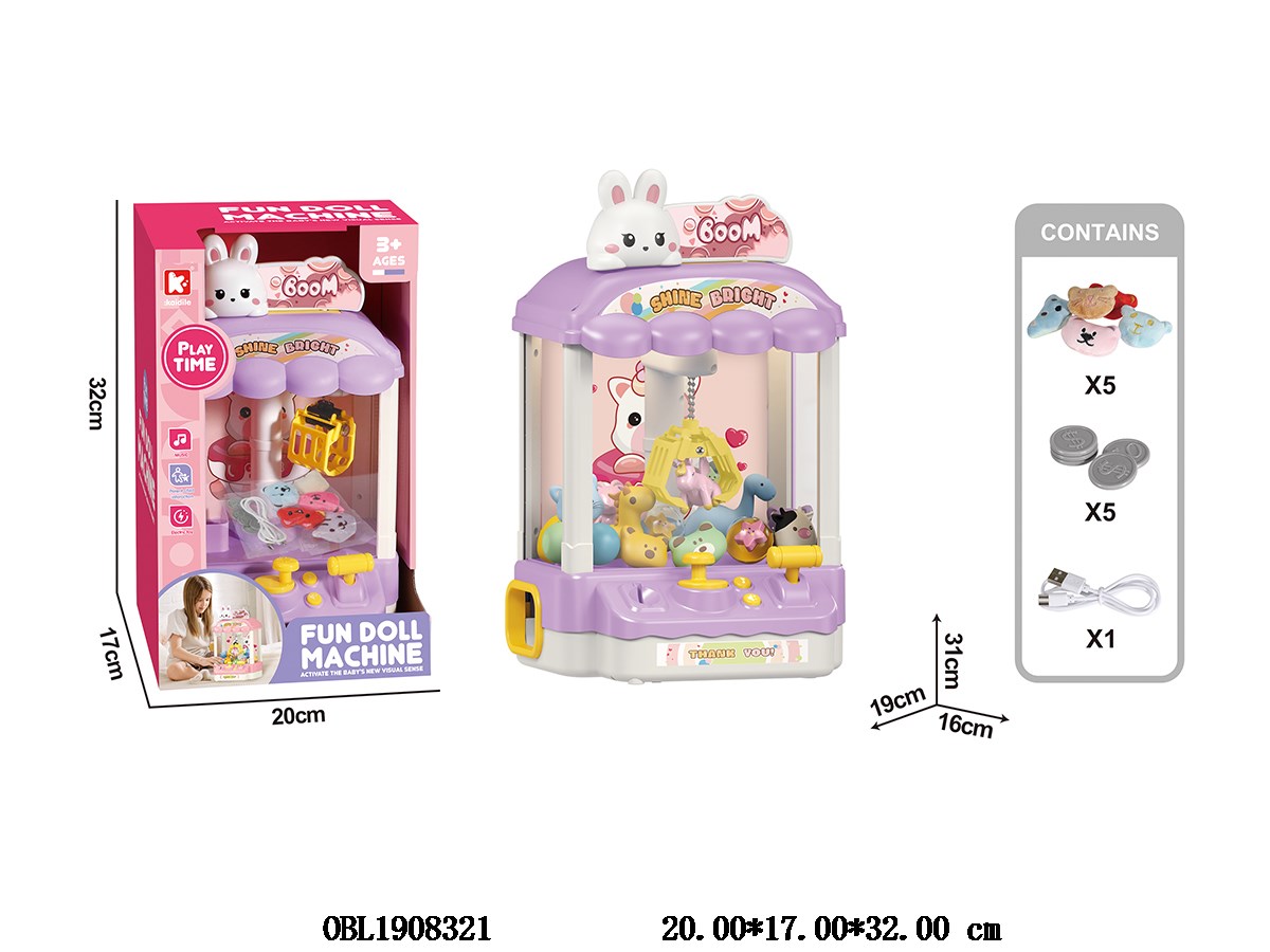 Home > Video Games > Purple Rabbit Doll Machine Set with Lighting, Music, 4 * AA, Power Not included, USB Cable