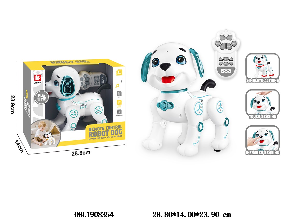 White print green intelligent remote control dog with light, music, touch and USB cable body 3.7V lithium rechargeable battery included remote control 2 * AA without power included