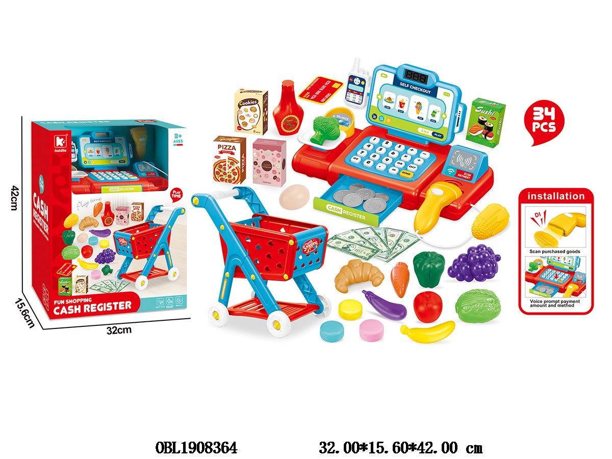 Home > Check-out Counters > Cash register set with scanning computer function, card swiping 3 * AA, no electricity included