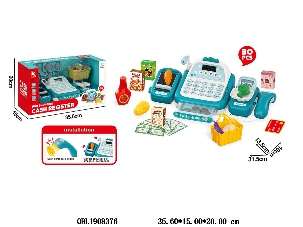 Deep blue cash register set with scanning computer function, card swiping 2 * AA, no electricity included
