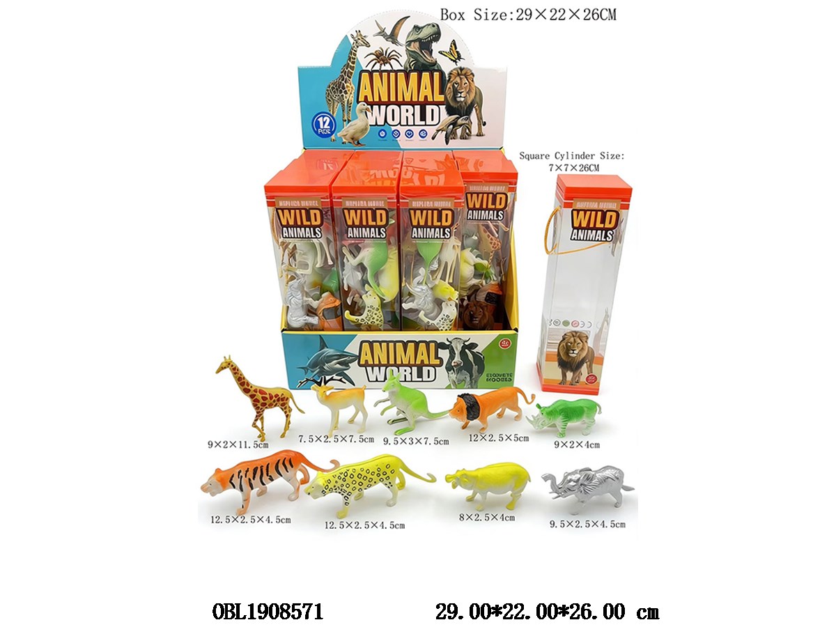 Hard animal set, 12 small tubes, 1 display box