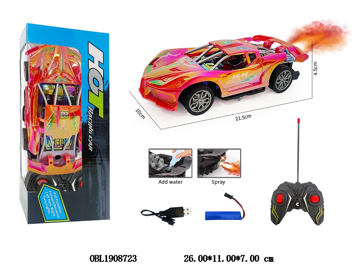 Home > R/C Car > Four way remote control vehicle with spray and USB cable body 3.7V lithium battery pack electric remote control 2 * AA non electric 27 frequency
