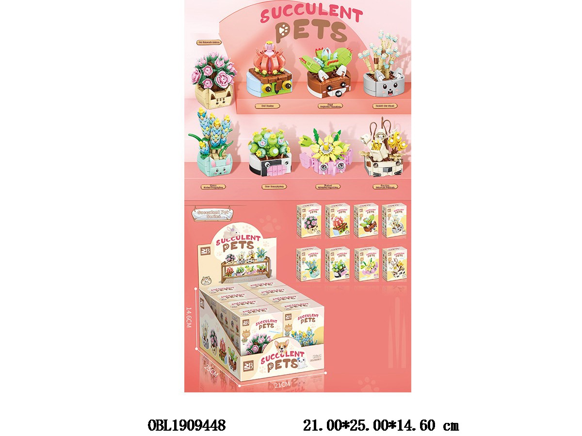 Puzzle building block succulent 8 mixed packaging 8 small boxes in one display box