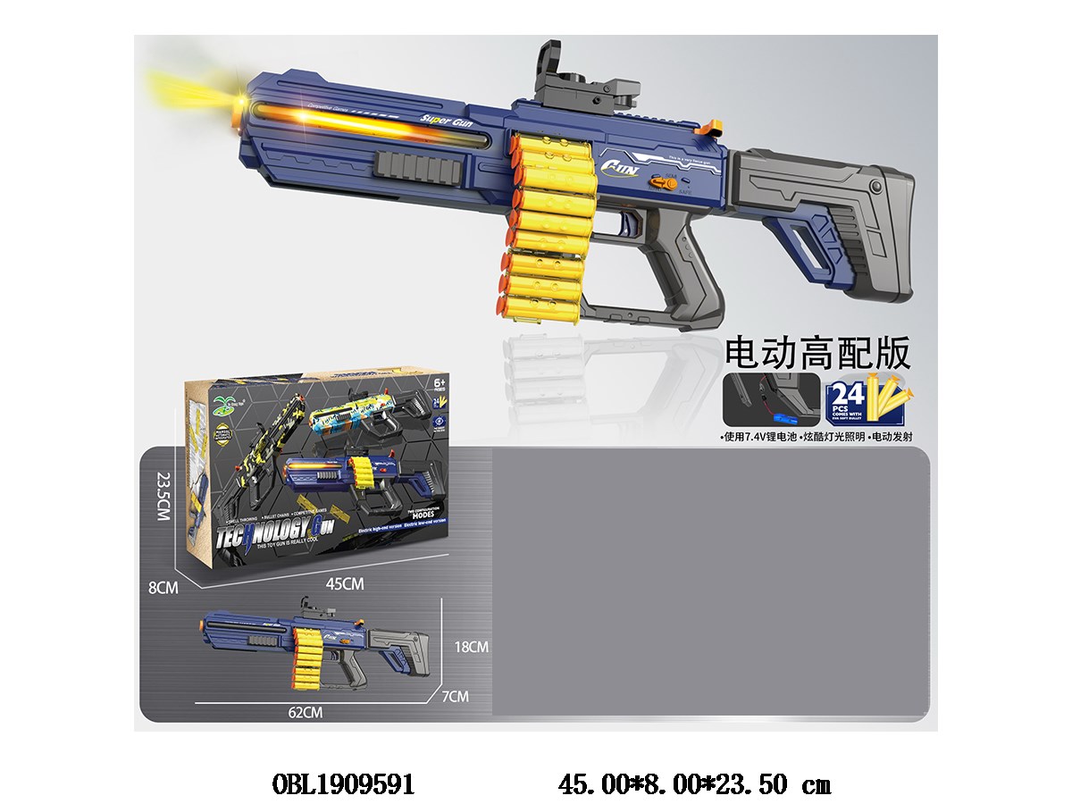 Home > Dart Gun > Hand to body electric shell throwing chain EVA soft bullet gun set with light sight and USB cable 7.4V lithium battery pack