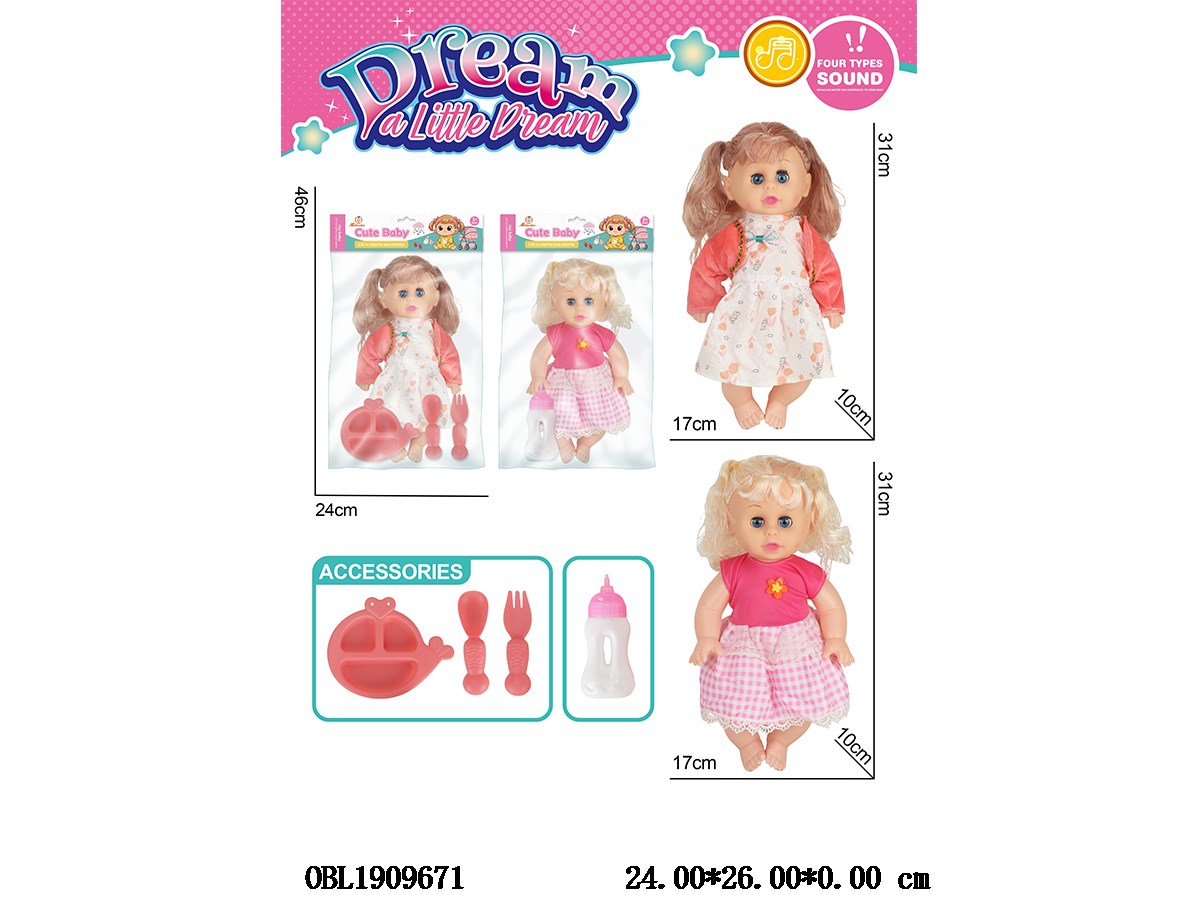 14 inch hollow body active eye Barbie set with 4 sound IC 3 * AG13 package electric clothes 1 color 2 mixed