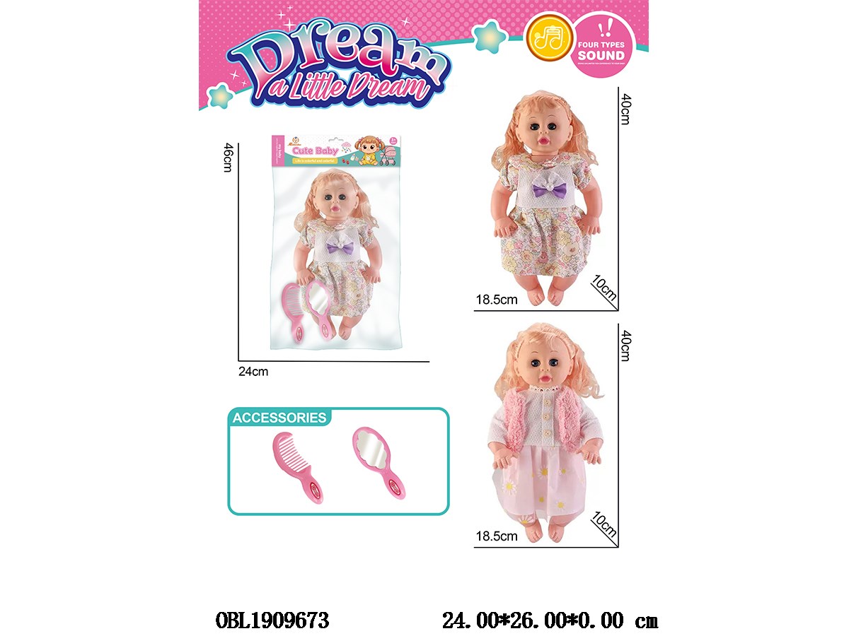 16 inch hollow body active eye Barbie set with 4 sound IC 3 * AG13 package electric clothes 1 color 2 mixed