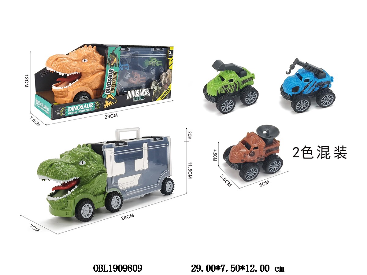 Sliding dinosaur storage car with 3 small cars and a large car, mixed in 2 colors