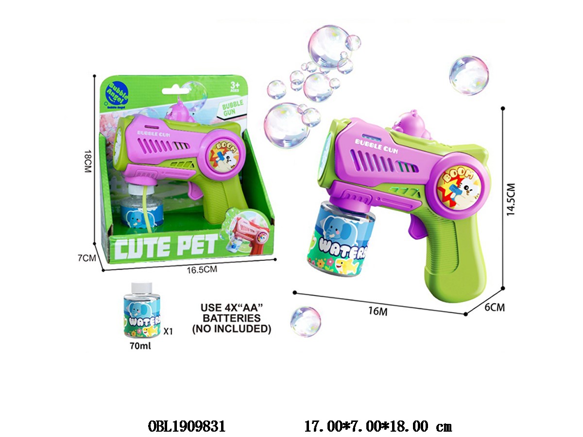 Color blocking cat electric bubble gun with 70ml bubble water 4 * AA, no power included