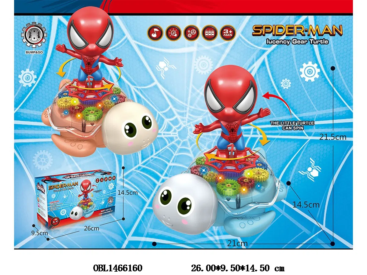 Electric universal gear tortoise with Spiderman with light music 3 * AA no package electric 2-color mixed package