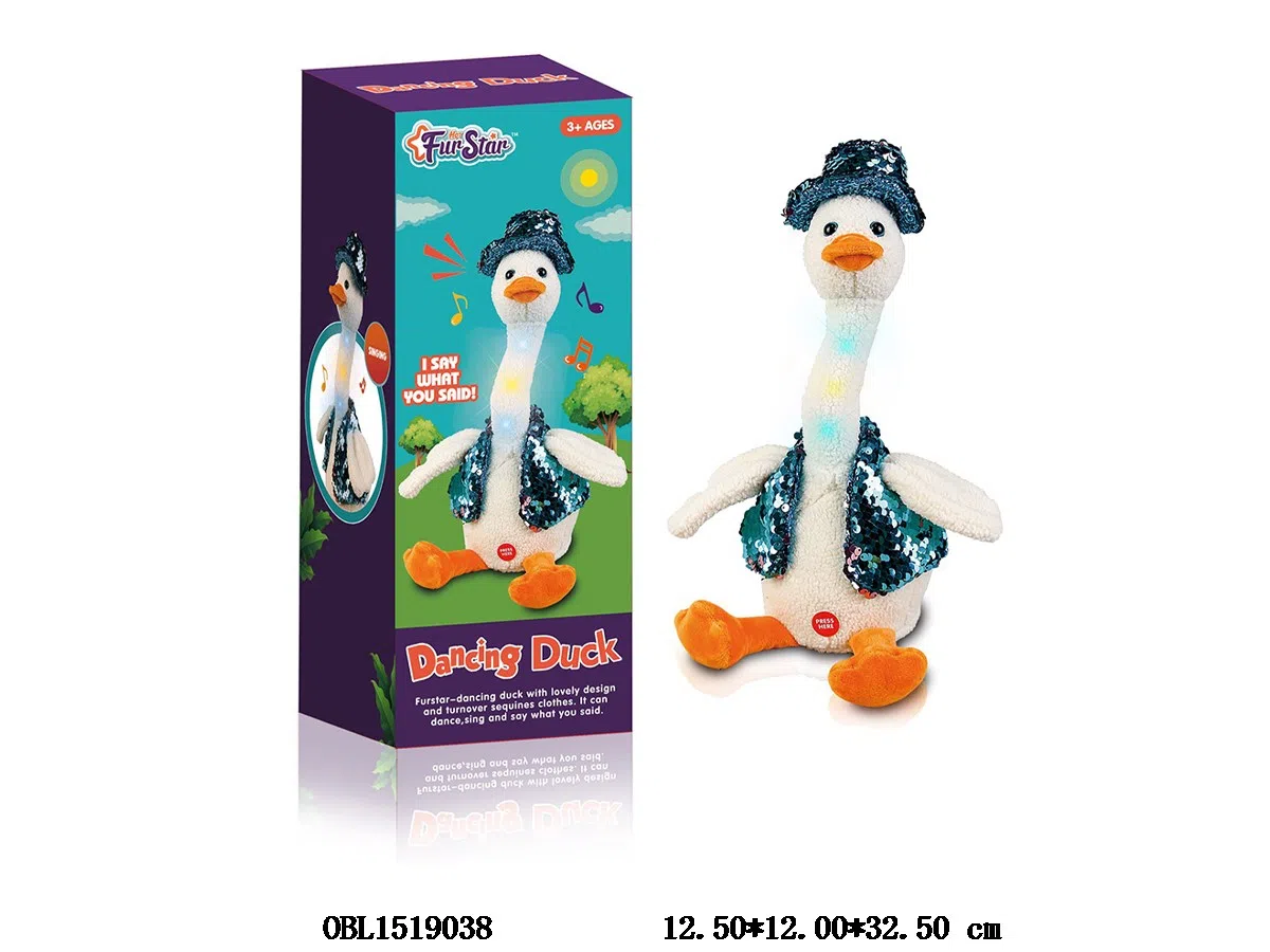 毛绒变装跳舞鸭 带灯光音乐 会录音 会跳舞 3*AA不包电