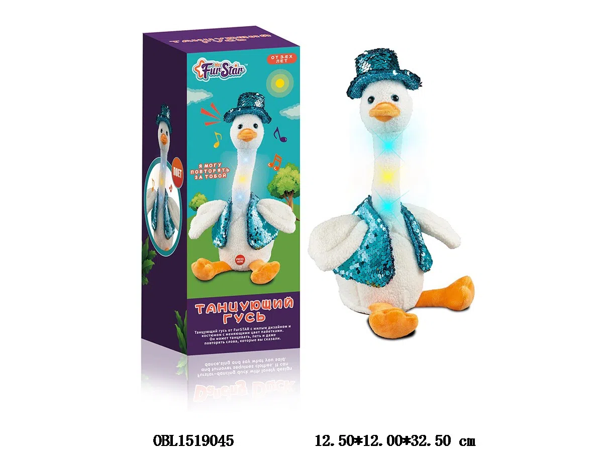 俄文版 毛绒变装跳舞鸭 带灯光音乐 会录音 会跳舞 3*AA不包电