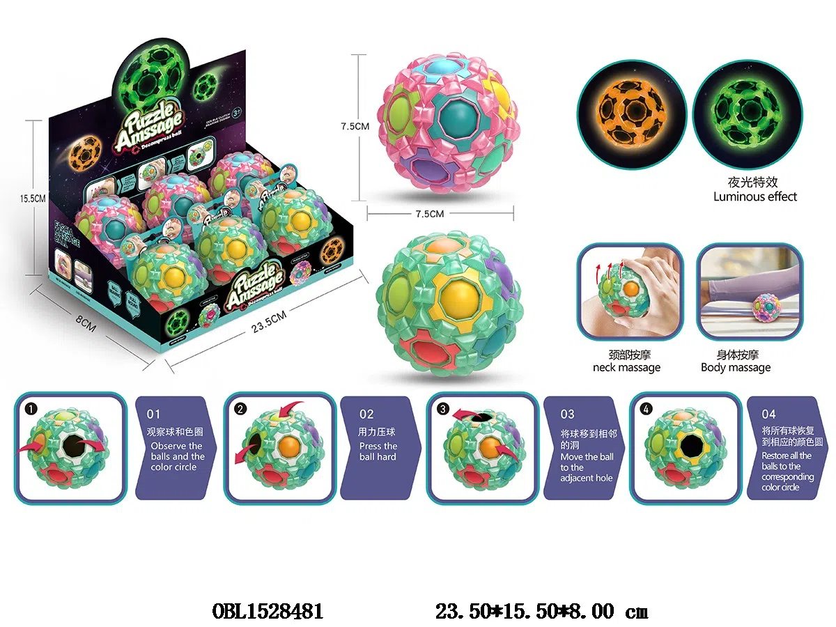 益智辨色指尖减压球 2色混装 6只装1展示盒 夜光款