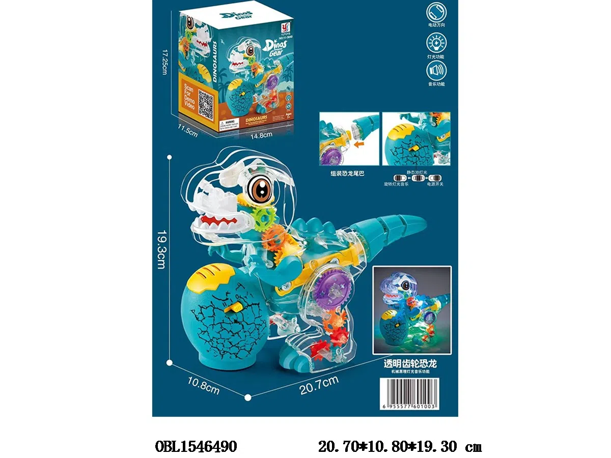 电动万向透明恐龙带灯光音乐 3*AA无包电