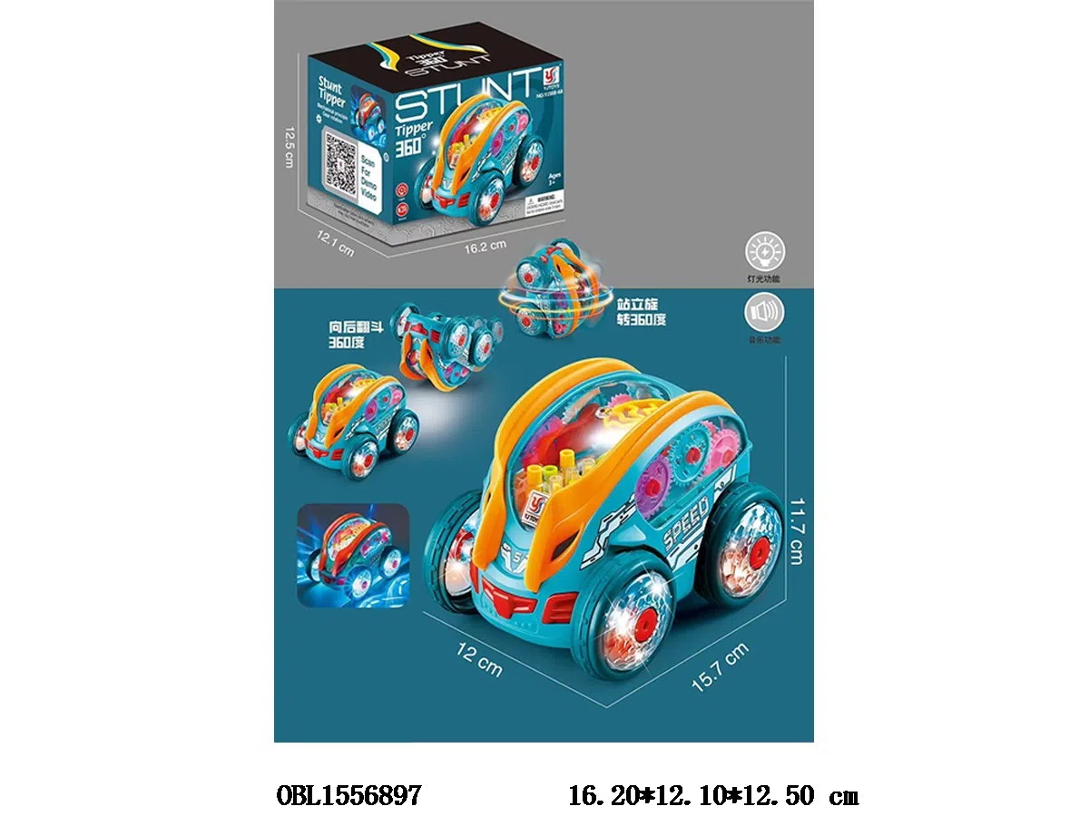 电动万向特技旋转翻斗车带灯光音乐 3*AA无包电