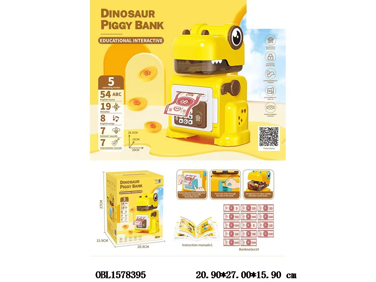 首页 > 储钱罐 > 益智早教恐龙电子存钱罐带灯光音乐 密码保护 指纹认证模拟 自动卷钞 3*AA不包电