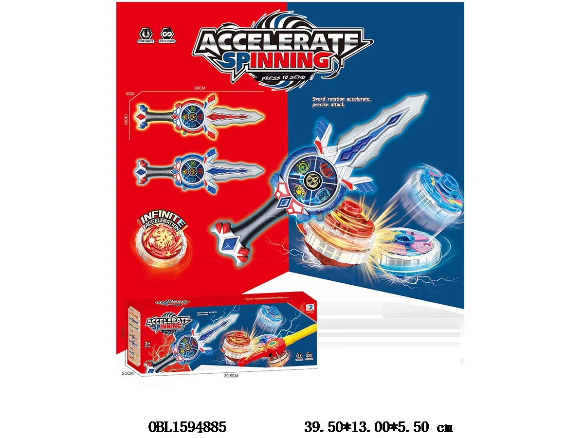 陀螺带剑型发射器带灯光声音 3*AG13包电 2色混装