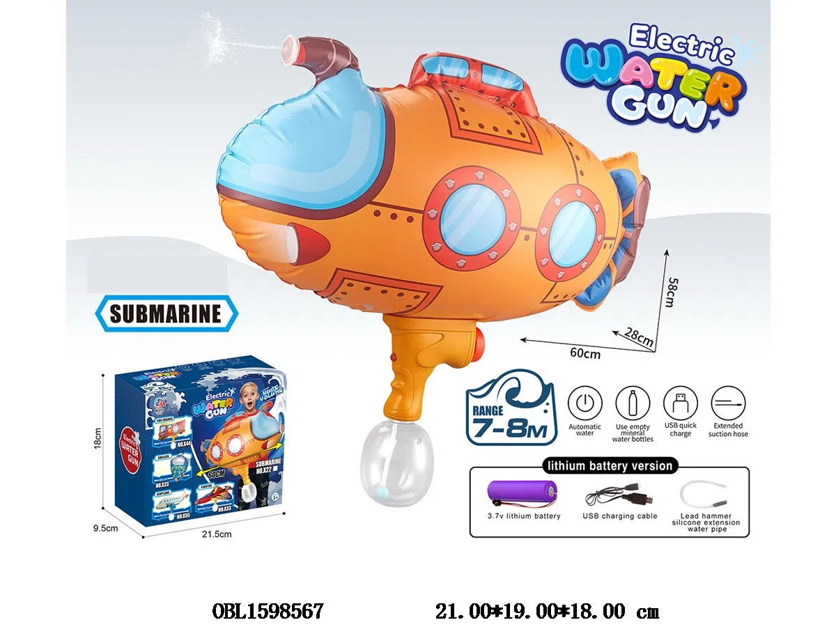 首页 > 水枪 > 潜水艇充气电动水枪套装配USB线 全防水 省体积 3.7V锂电池包电 3.7V锂电版 450ML容量