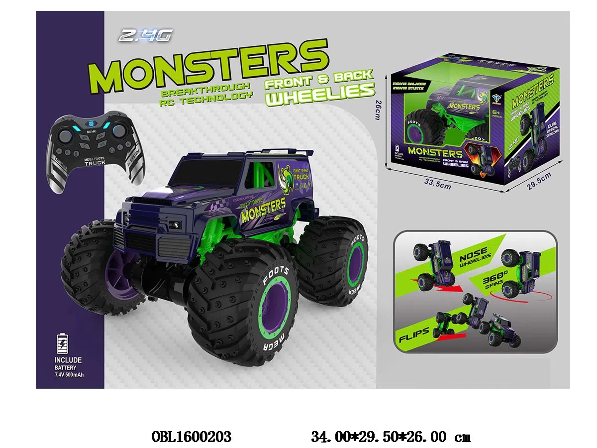 首页 > 遥控车 > 1:10遥控特技站立大轮车带灯光陀螺仪 自动演示 配USB线 7.4V电池包电 遥控器2*AAA不包电 2.4G频率