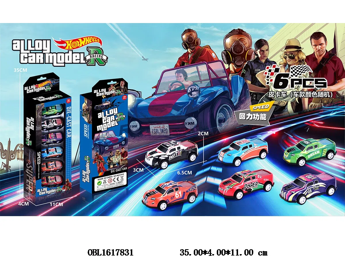 首页 > 合金车 > 6只装合金铁皮回力皮卡车