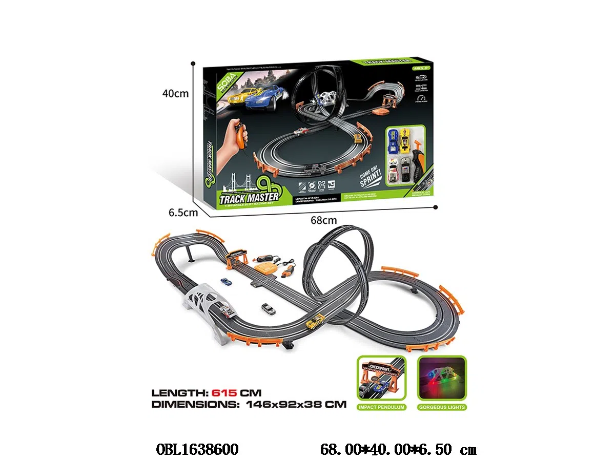 1:64电动竞速轨道赛车套装 2只路轨赛车/带线遥控器 6*AA不包电