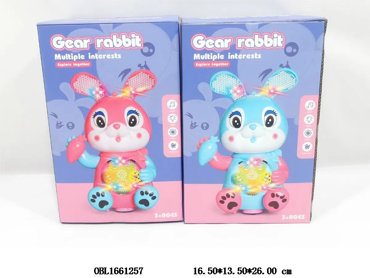 电动万向齿轮兔带灯光音乐 3*AA不包电 2色混装