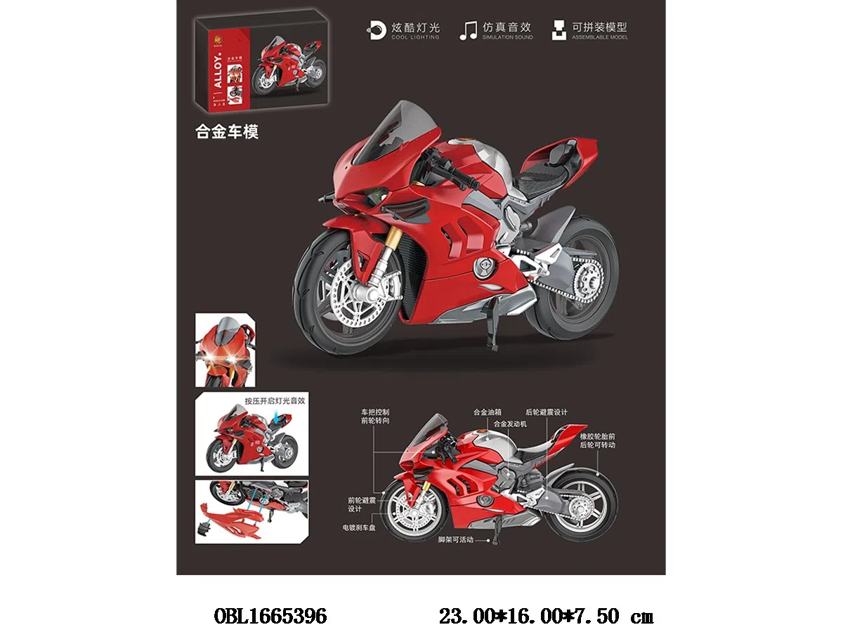 中英文版 合金拼装摩托车 带灯光音效 包电