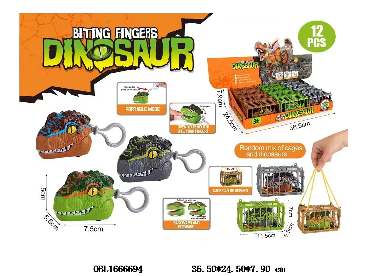 回力咬手恐龙头配手提笼 3色混装 12笼装1展示盒