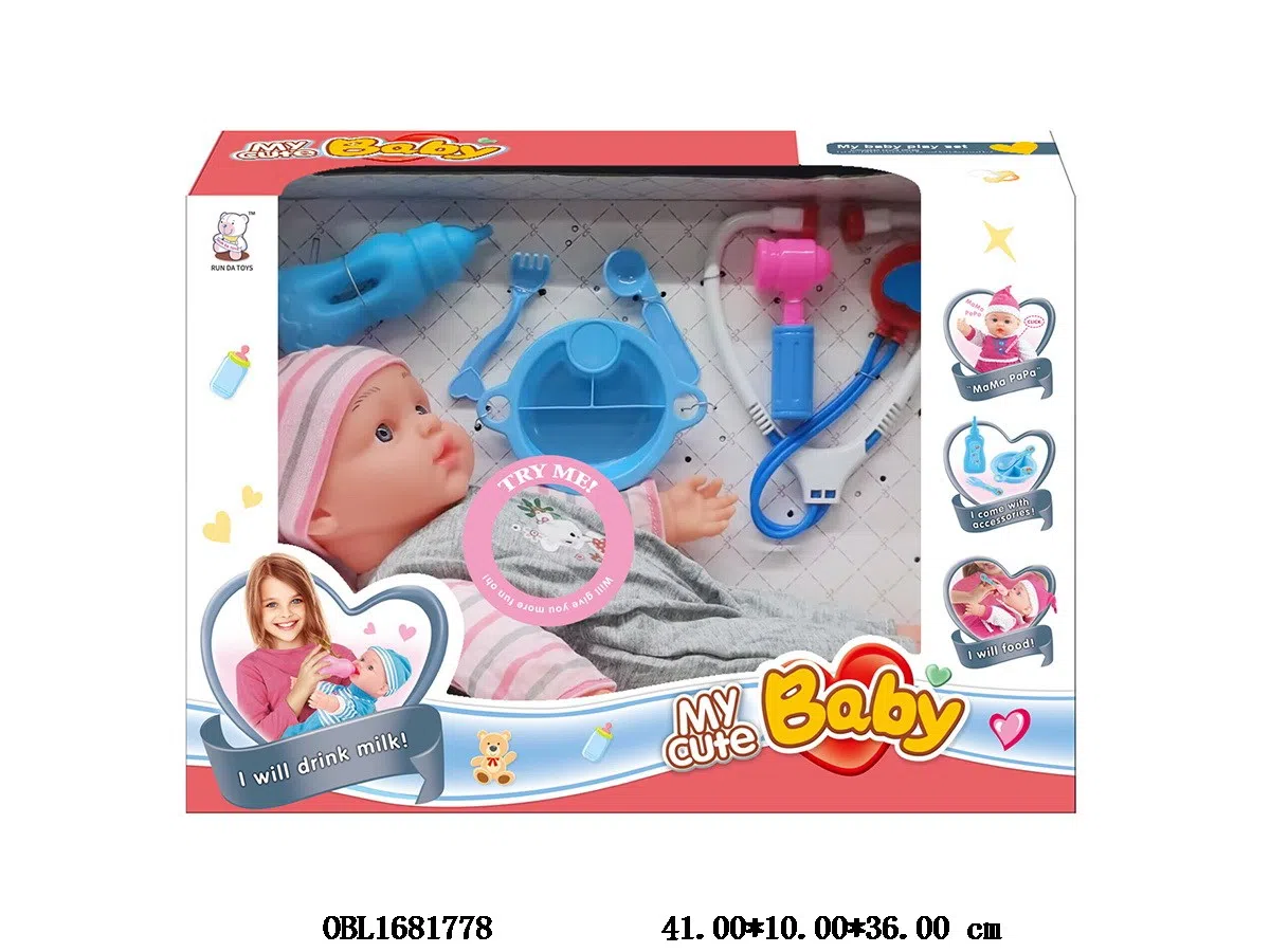 首页 > 带IC芭芘公仔 > 16寸搪胶公仔套装带IC 3*AG13包电 主体衣服2色混装
