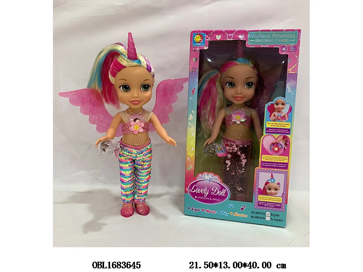 14寸实身独角兽翅膀带芭芘带灯光 英文IC 3*AA不包电 衣服2款混装